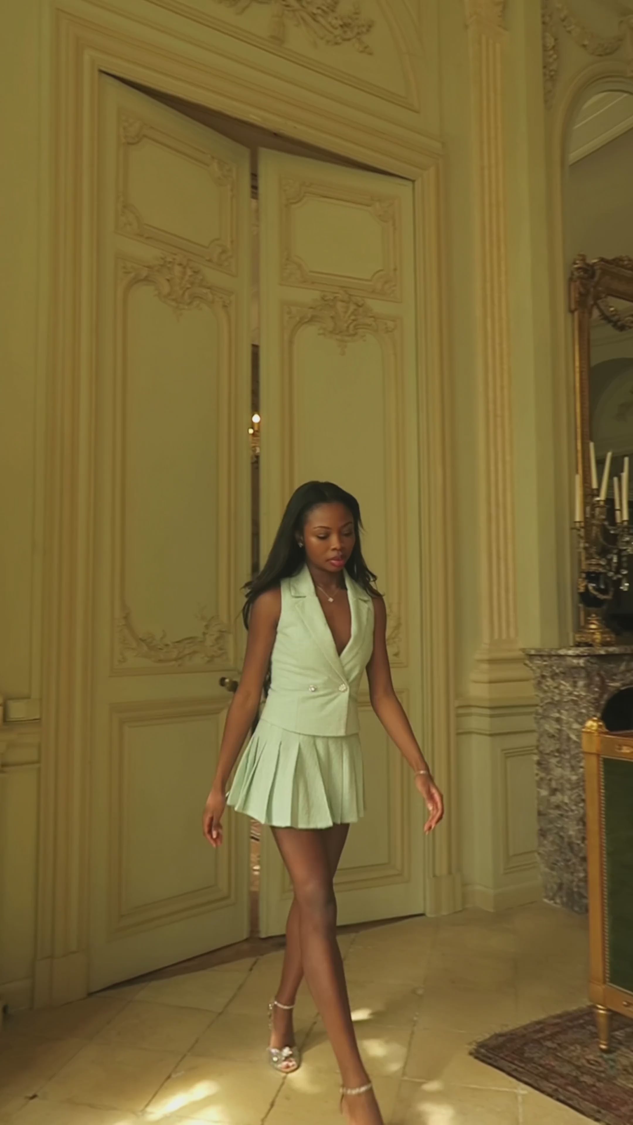 Say hello to the Dahlia Top in pastel green she structured, with just the right amount of sparkle.